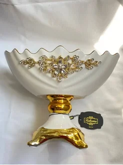 Фруктовница. Ваза для фруктов белая фарфоровая с брошью