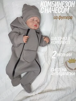 Комплект комбинезон и шапочка для новорождённых