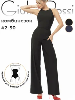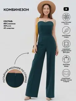 Комбинезон брючный вечерний с поясом и V-вырезом
