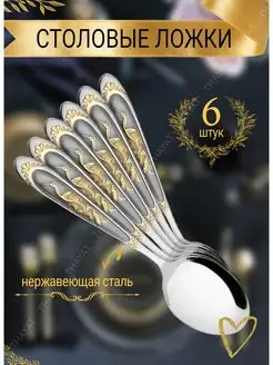 Набор столовых ложек с золотым рисунком аист 6 шт