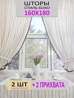 Шторы для гостиной спальни бохо интерьерные 160х260 1 шт