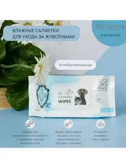 Салфетки для животных с хлоргексидином, 15х20см - 80 шт