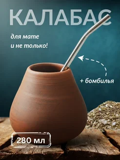 Калабас для мате глиняный, 280 мл + металлическая бомбилья