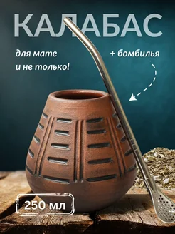 Калабас для мате глиняный Экстазис, 250 мл + бомбилья
