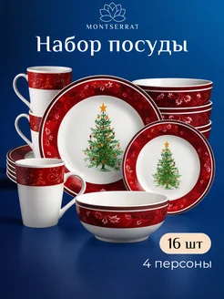 Набор посуды столовой на 4 персоны - сервиз новогодний