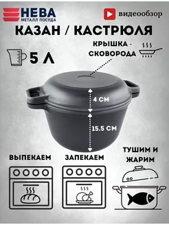Кастрюля казан 7 л с крышкой-сковородой 28 см