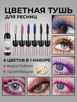 Тушь для ресниц цветная влагостойкая удлиняющая 6 в 1