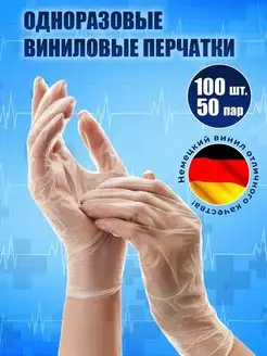 Перчатки виниловые одноразовые 100 шт 50 пар