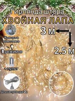 Гирлянда штора хвойная лапа мишура 3х2.5