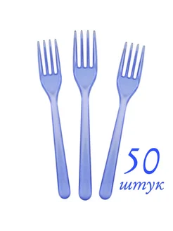 Вилки пластиковые одноразовые цветные Синие 50 штук