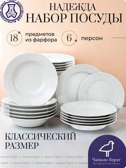 Сервиз обеденный 6 персон, 18 предметов Надежда, белый