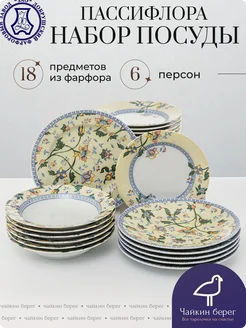 Набор посуды Пассифлора, тарелки с цветами на 6 персон