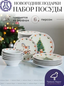Новогодний набор посуды на 6 персон, 18 пр, посуда с лошадью