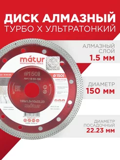 Диск алмазный турбо Х ультратонкий, 150х1.5х10х22мм