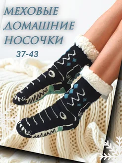 Теплые высокие носки тапочки с мехом