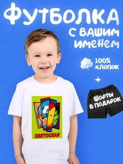 Футболка с надписью имя мальчик Святослав супергерои марвел