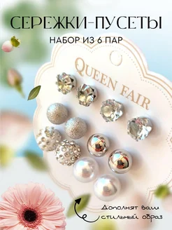 Набор серьги - пусеты Жемчужные 6 пар