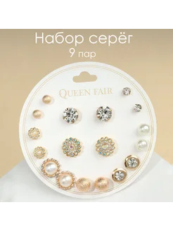 Набор серьги - пусеты "Юность" 9 пар