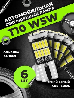 Лампы автомобильные светодиодные Т10 W5W с обманкой, 6шт