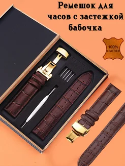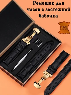 Подарочный комплект ремешок для часов с застежкой бабочка