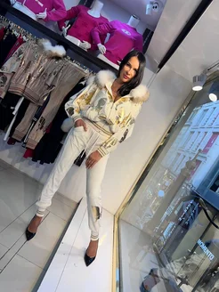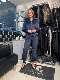 Костюм спорт-шик, воротник - нат. мех, королевский велюр