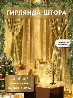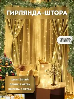 Гирлянда штора 3х3 и 3x2 занавес новогодняя