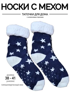 Носки тапки с мехом новогодние высокие теплые с тормозами