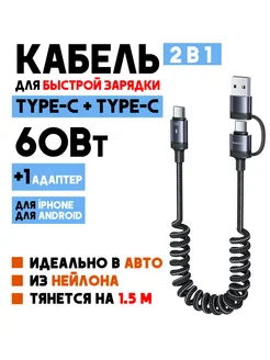 Кабель type-c для быстрой зарядки с адаптером USB спираль
