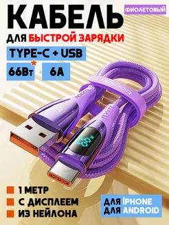 Кабель type-c usb быстрая зарядка iPhone, с жк, фиолетовый