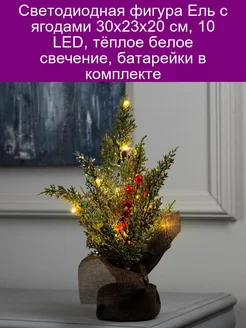 Светодиодная фигура Ель с ягодами 30 см 10 LED тёплый белый