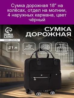 Дорожная сумка на колёсах чёрная с карманами 18L