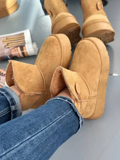 Угги женские зимние с мехом на высокой подошве нескользящая