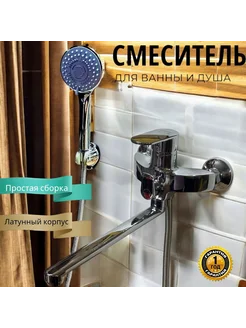 Смеситель для ванны с душем и лейкой с длинным изливом