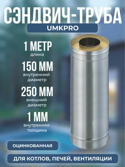 Сэндвич-труба 1,0м, ф 150х250, AISI 439 Оц, 1,0мм 0,5мм