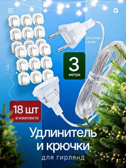 Удлинитель для гирлянды 3 метра крючки самоклеящиеся