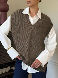 Жилет вязаный трикотажный оверсайз безрукавка
