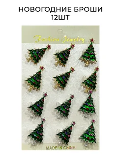 Брошь новогодняя елочки набор 12шт Новый год 2026