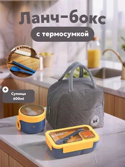 Ланч-бокс с отделениями термосумкой и супницей набор