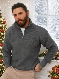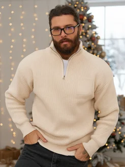Свитер оверсайз теплый вязаный с воротником на молнии
