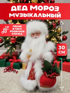 Музыкальный Дед Мороз с посохом и мешком 30 см