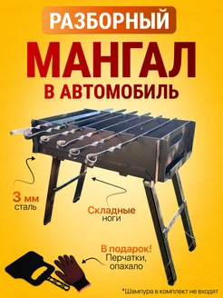 Мангал 5 мм складной 75 см на 12 шампуров без покрытия