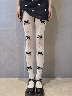 Колготки с бантиками в мелкую сетку в японском стиле