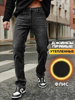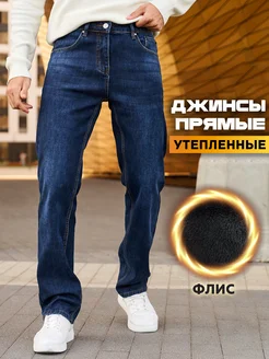 Джинсы утепленные прямые брюки классические на флисе