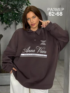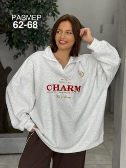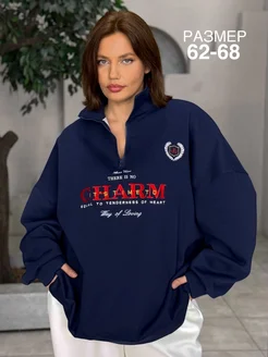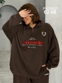 Свитшот оверсайз полузамок без начеса на молнии с принтом