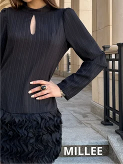Платье вечернее трикотажное мини с длинными рукавами