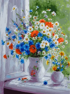 Картина по номерам "Васильки и маки", 30х40 см