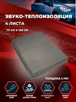 Звуко-Теплоизоляция самоклеящаяся изолон 4мм 1х0 75м 4 листа…