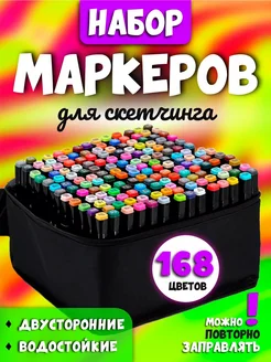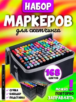 Маркеры для скетчинга набор 168 штук двухсторонние в сумке
