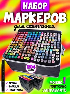 Маркеры для скетчинга набор 204 штук двухсторонние в сумке
