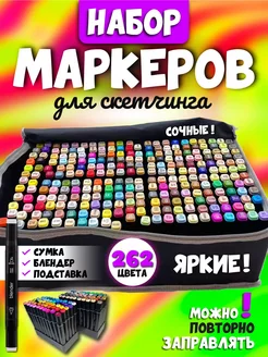 Маркеры для скетчинга набор 262 штук двухсторонние в сумке